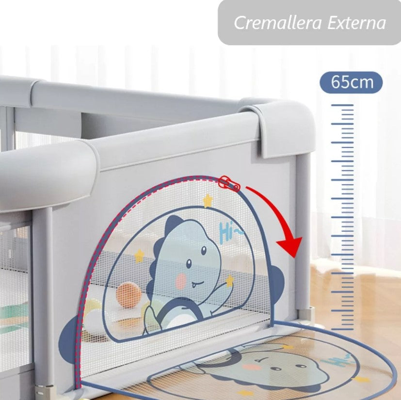 Altura cómoda: la altura de la valla para bebés es de 65 cm. Está especialmente diseñado para bebés de 6 meses a 6 años de acuerdo a las características fisiológicas y de comportamiento del bebé. Ideal para que los bebés aprendan a gatear, pararse y caminar; cremallera externa, las madres pueden controlar libremente el acceso del bebé.